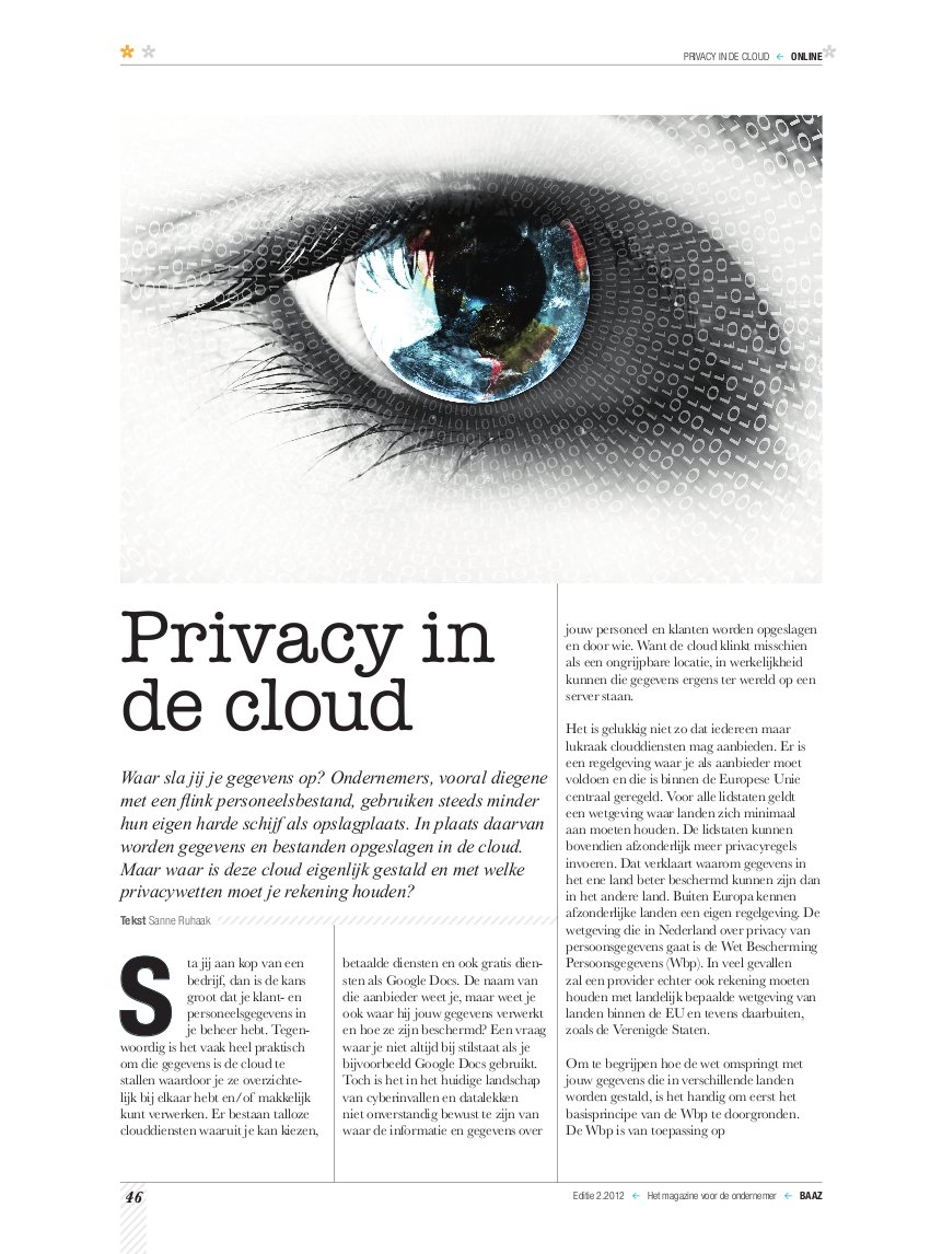 Waar sla jij je gegevens op? Ondernemers, vooral diegene met een flink personeelsbestand, gebruiken steeds minder hun eigen harde schijf als opslagplaats. In plaats daarvan worden gegevens en bestanden opgeslagen in de cloud. Maar waar is deze cloud eigenlijk gestald en met welke privacywetten moet je rekening houden?